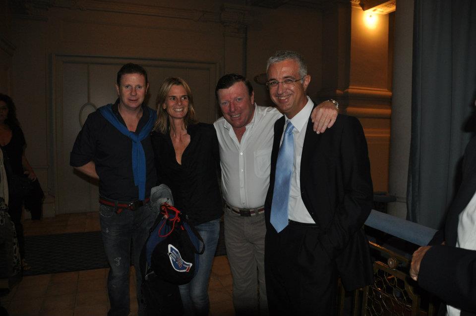 Con clientes, compañeros y amigos.